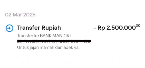 "Alhamdulillah 6juta bonus pertama bisa kirim ke kampung, semoga membawa kebahagiaan dan keberkahan untuk keluarga tercinta"